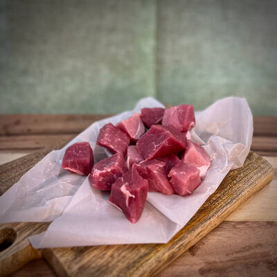 Das bereits vorgeschnittene Schweinefleisch eignet sich hervorragend zum Schmoren und bleibt dabei schmackhaft und saftig.